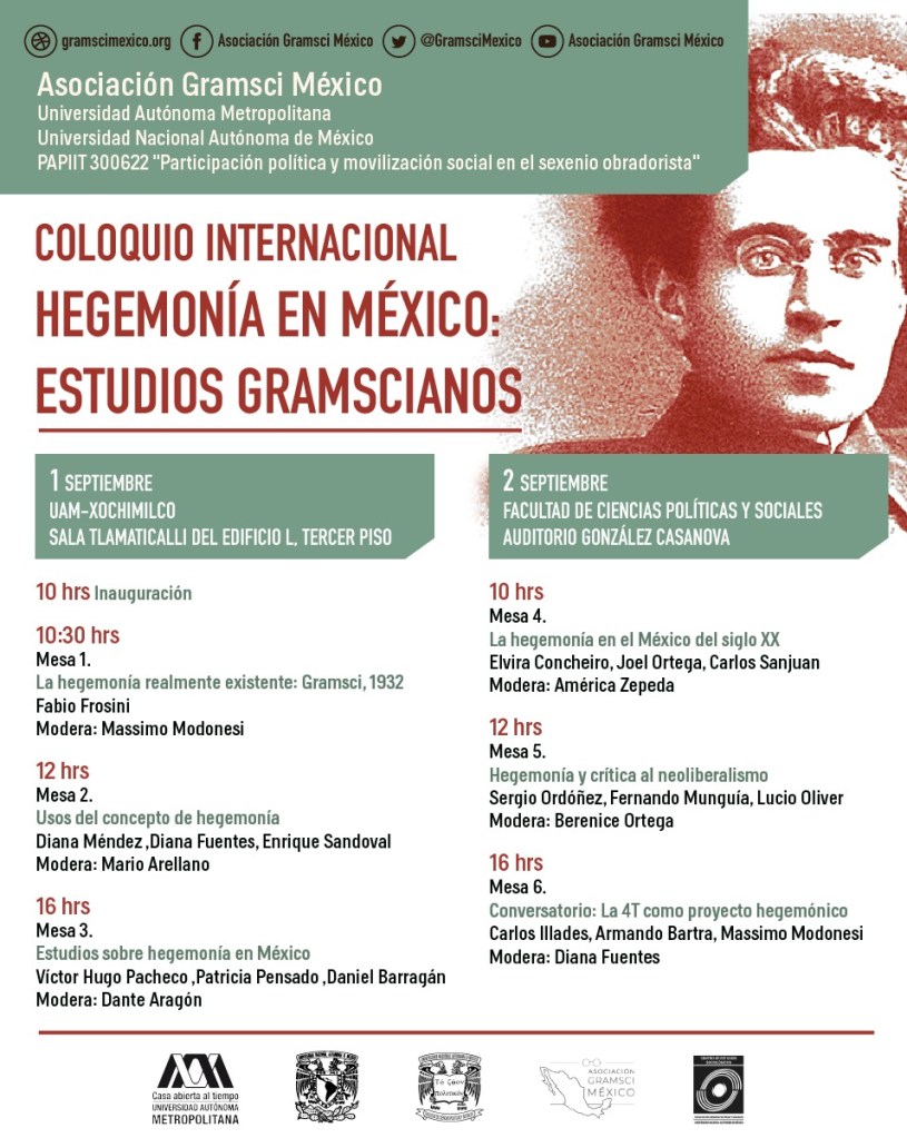La Asociación Gramsci México, la Universidad Autónoma Metropolitana y la Universidad Nacional Autónoma de México invitan al Coloquio Internacional ‘Hegemonía en México: estudios gramscianos’ que tendrá lugar en la Ciudad de México los próximos 01 y 02 de septiembre del 2022.
