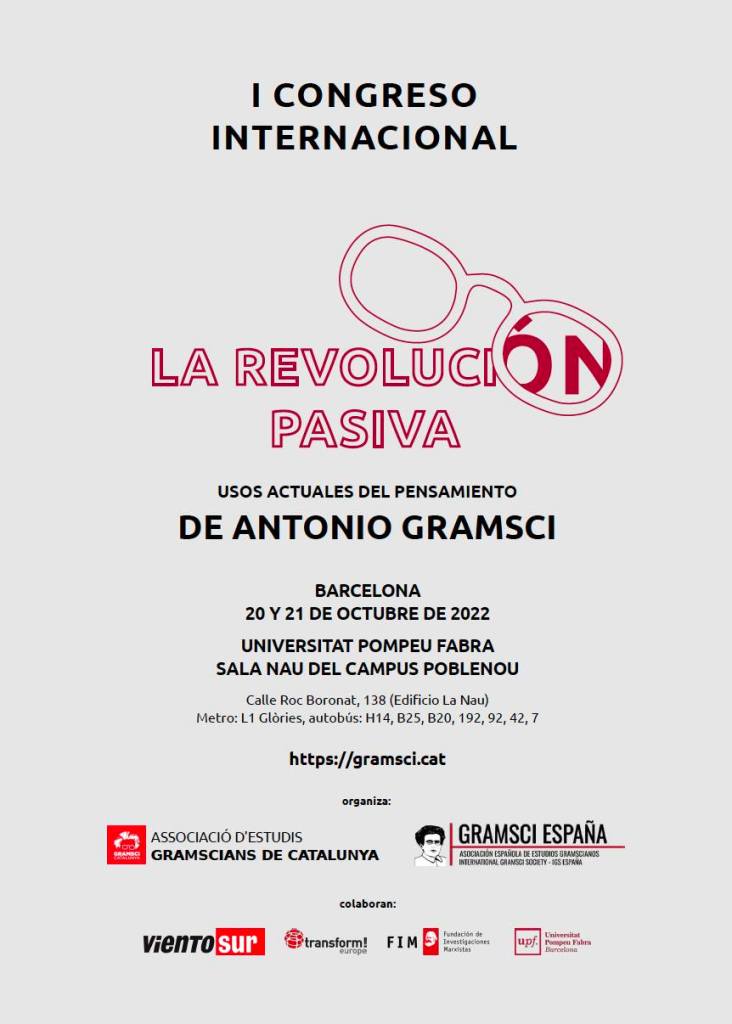 Les invitamos al I Congreso Internacional ‘La Revolución Pasiva. Usos actuales del pensamiento del Gramsci’ organizado por la Asociación Gramsci España y la Associació d’Estudis Gramscians de Catalunya.